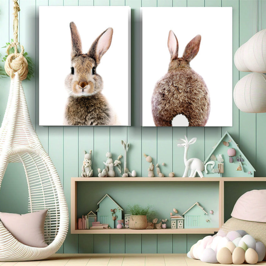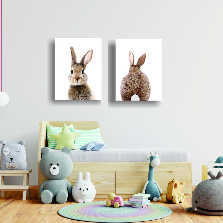 High quality print of a bunny printed on two canvas’s. If you would like just one of the images no problem, just let us know, we think they are so cute as a pair.