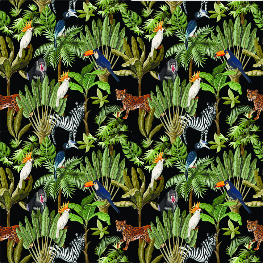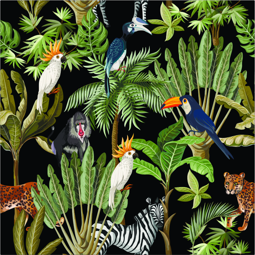 Exotic jungle animals is a fun and eye catching wallpaper. We do this in a white or black