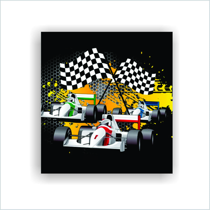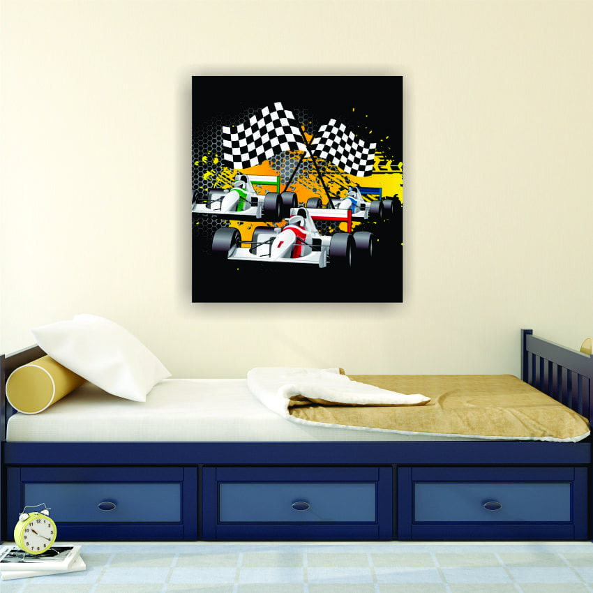 Winning Formula 1 racing car printed on a canvas stretched on a solid wooden frame.