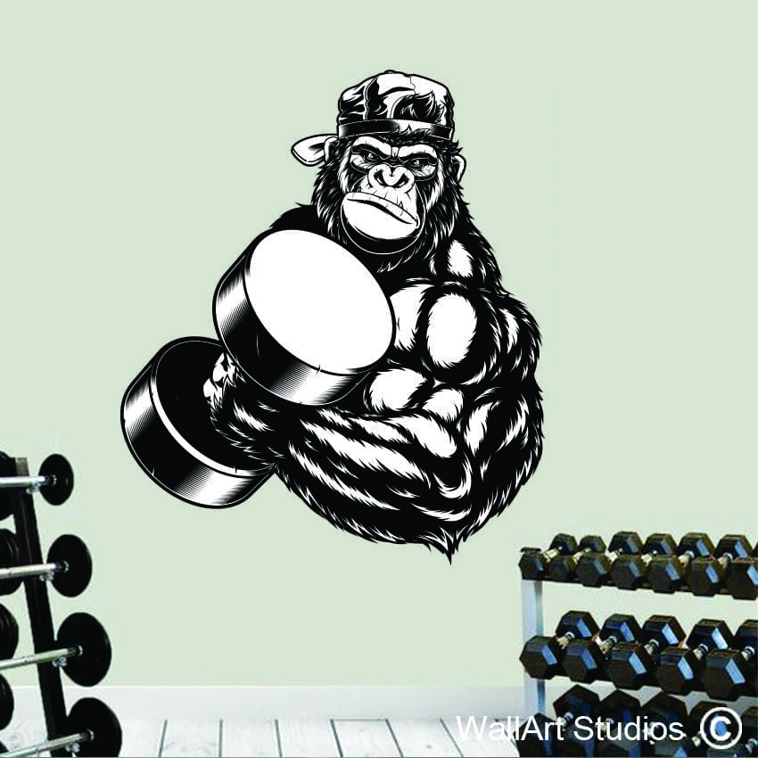 Gorilla Muscle Wall Sticker for a boys room, man cave or gym. Place it on walls or windows. Easy to apply and will not damage walls.
