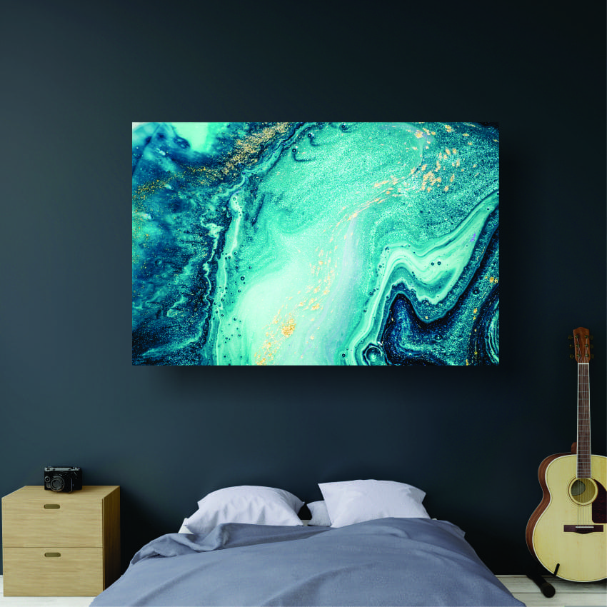 Marble Art with swirls of blues and gold.