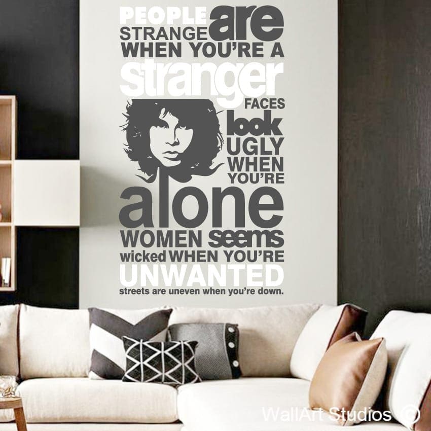The Doors wall decal with an image of Jim Morrison and lyrics from their song “People are strange”.