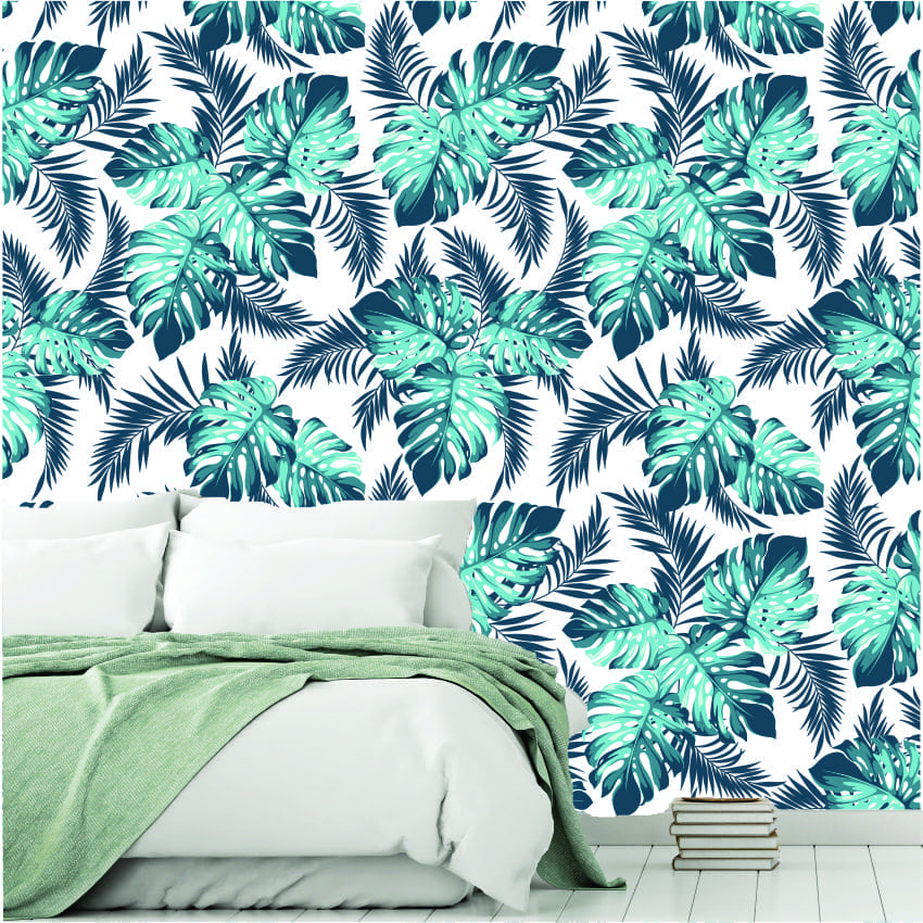Tropical palm leaf wallpaper is custom printed on a quality wallpaper. For help with measuring please Contact Us.