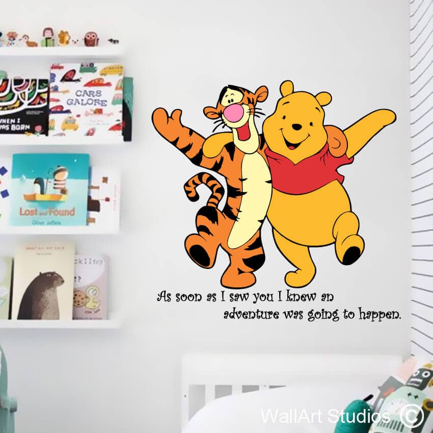Winnie the Pooh & Tigger Wall Art Sticker with a lovely quote! Life is an adventure especially with friends & family. Custom made for you with Love. The decal comes in one big piece which makes applying it so much easier!  No fuss, no mess…